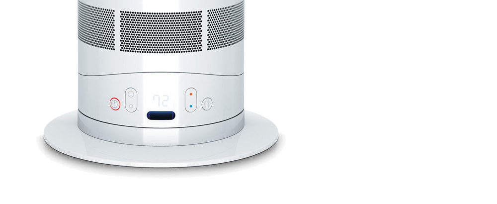 원하는 온도를 1도까지 정확히 맞출 수 있고, 스마트 온도 조절 장치가 온도를 그대로 유지시킵니다. 공기흐름, 회전, 온도까지 리모컨으로 조절이 가능하고 리모컨은 기기의 윗부분에 자석으로 부착됩니다.