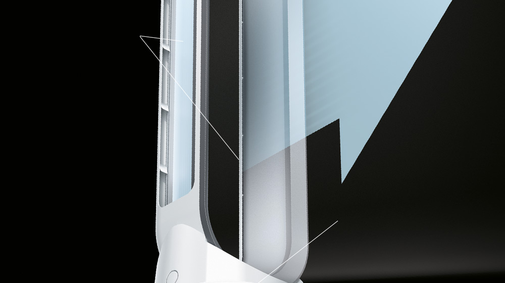 정밀한 경로로 공기흐름을 분리시켜 바람을 보다 효율적으로 상단 루프로 보냅니다.