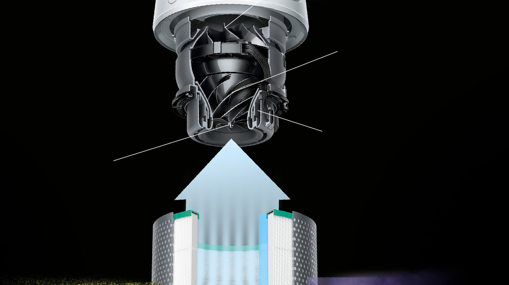 터보차저와 제트 엔진에 사용되는 기술이 결합되어 강력한 공기흐름을 만들어냅니다.